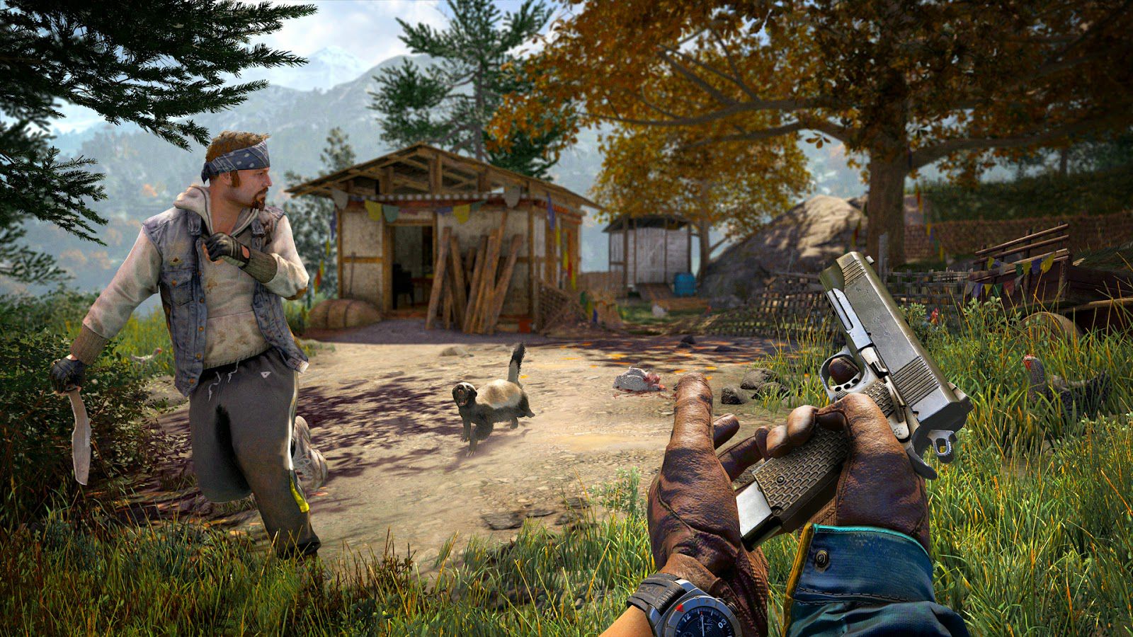Kyrat là một vùng đất vô cùng nguy hiểm. Mặc dù tất nhiên là cũng đẹp nhưng đừng để vẻ đẹp đó làm bạn mất cảnh giác, nhất là khi bất cứ loài động vật nào ở đây, dù có là ăn thịt hay ăn cỏ, cũng đều có thể giết chết bạn và mỗi một con vật mà bạn giết đều có thể dùng để nâng cấp đồ của bạn. Nếu bạn muốn nâng cấp để mang thêm nhiều súng hơn, nhiều đạn hơn, nhiều bom và mìn hơn, bạn sẽ cần sẽ đi săn những loài vật ở Kyrat này. Giết chúng. Lấy da chúng và để dành trong balo của bạn.